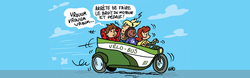 Cela permet de se rendre à l’école en toute sécurité tout en respectant la planète puisque contrairement à la voiture ou aux bus classiques, le vélo-bus ne pollue pas du tout. Les plus grands peuvent suivre le vélo-bus avec leur propre vélo : ainsi quand ils seront au collège, ils pourront garder l’habitude du vélo et y aller seuls.