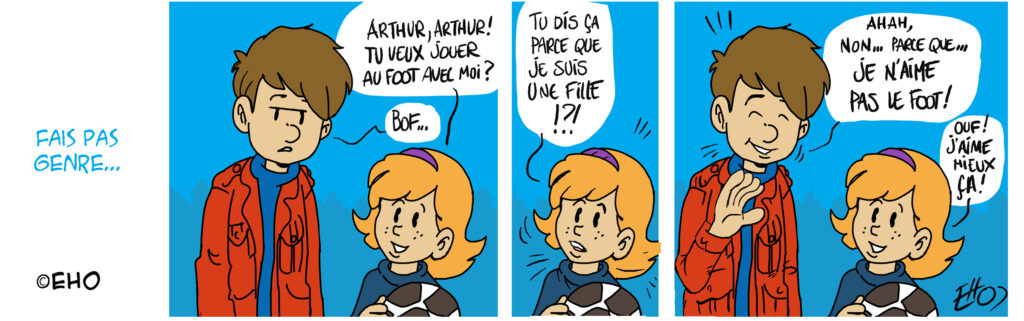 Ben voilà. Dire que je ne peux pas jouer au foot juste parce que je suis une fille, ça me fait aussi bizarre.