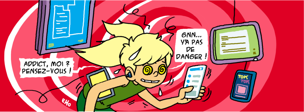 Il arrive, par exemple, qu’on commence une vidéo et qu’une autre s’enchaîne, puis une autre encore, sans que l’on se rende vraiment compte du temps qui passe. Une notification vient parfois interrompre une discussion, un jeu, un repas, une pensée. Et quand on marche en regardant son écran, on peut oublier ce qui se passe autour de soi et se mettre en danger.
