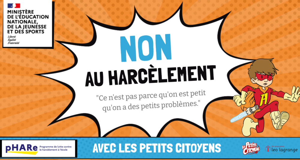 Les petits citoyens sont engagés dans le programme pHARe au coté du ministère de l’Éducation nationale, pour aider les enfants de 7-11 ans à mieux comprendre ce qu’est le harcèlement et ce qu’il est possible de faire pour lutter contre cette forme de violence.
